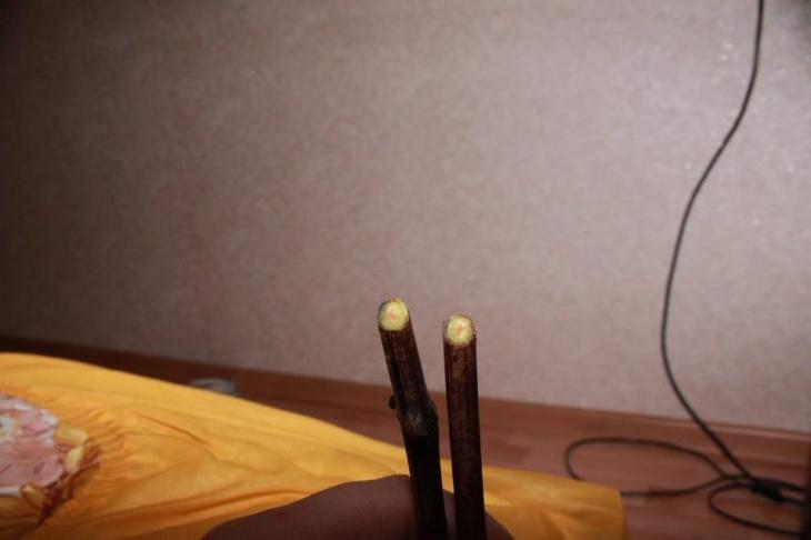 - Немає різниці температур між кореневищем і верхнім кінцем чубука. Саме відмінність у температурному режимі забезпечує спокій нирок при активному зростанні коренів. Для правильного розвитку держака оптимальним вважається співвідношення температури для коренів + 25 °, для верхньої бруньки + 18 °.