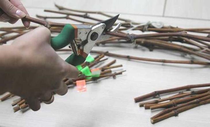 - згортають лозу в кільце, роблячи кілька витків, скріплюють мотузкою;