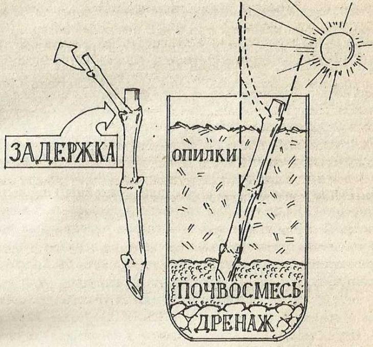 - використання штучних стимуляторів Гетероауксин або Корневином, які стимулюють утворення кореневої системи, затримуючи нирковий розвиток;
