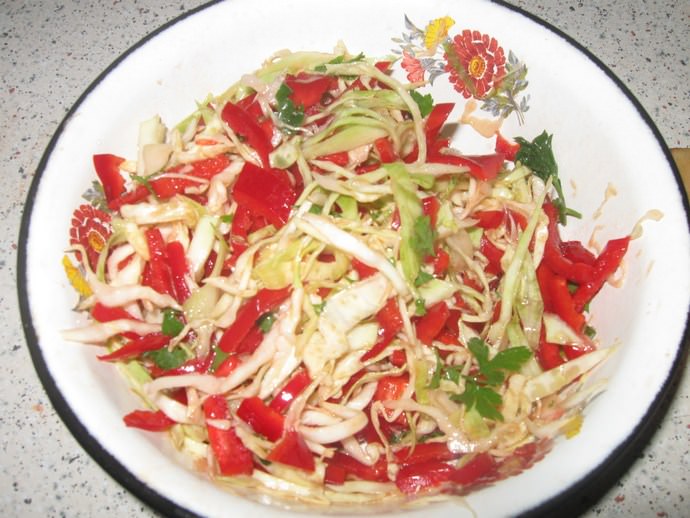 Капустяний салат дуже корисний, навіть якщо він був заготовлений на зиму. Це досить простий спосіб його приготування.