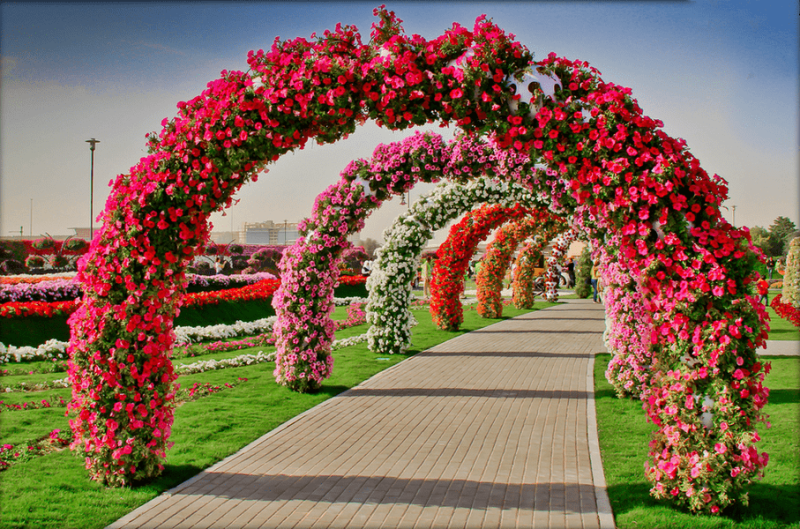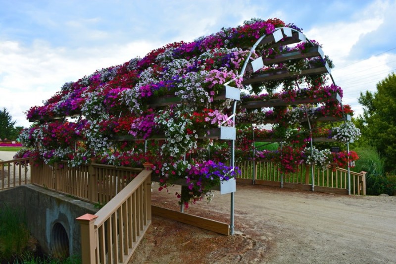 Будь-яка садові арка виглядає набагато приємніше, якщо по ній плентаються гілки рослин. Прикраса аркових конструкцій – не новинка, але в основному для цієї мети підбираються багаторічники, які створюють один і той же вид з року в рік (як у нас в'юнкі троянди). А що якщо урізноманітнити щорічний пейзаж новими фарбами? Петунія відмінно впорається з цим завданням, стане свіжим і пишним оздобленням. Особливо така задумка буде хороша для саду в мальовничому стилі або кантрі.