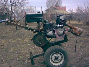 Для таких цілей найбільше підходить мотоблок Нева, який має 4 передніх і 2 задніх швидкості і масу близько 90 кг. Потужність двигуна 6,5 – 7 л. с., що цілком вистачає для експлуатації по бездоріжжю. Розмір коліс іноді збільшують і по діаметру, і по ширині.