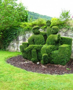 - Поодиноко посаджені солідні екземпляри стрижуть у вигляді геометричної форми або художньої фігури.