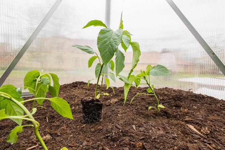 Якщо ви хочете максимально використовувати площу теплиці, карликові сорти перцю можна висаджувати між звичайними високорослими рослинами.
