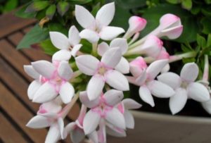 - Длінноцветковой. Більший вигляд. При гарному догляді висота чагарнику досягає майже метра. Стебла довгі, з супротивні розташуванням листя. Щільні рожеві або білі суцвіття формуються в пазухах листків, переважно верхівкових. На підвіконнях квартир зустрічається рідко – частіше вирощується в оранжереях для зрізання.