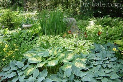 На добре зволожених грунтах швидко розростаються хости, видове різноманіття яких обчислюється декількома тисячами.