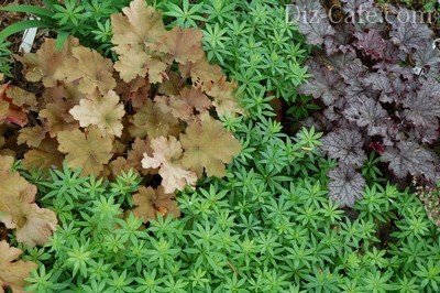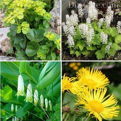 При досить щільному затенении, створюваним кронами старих розлогих дерев або стін північних сторін будівлі, здатні зберігати декоративність такі рослини: копитняк європейський, тіарка серцелиста, купина і оман чудовий