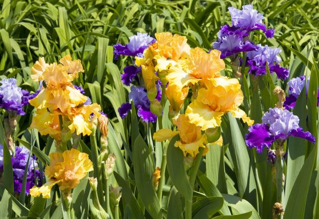 Кращі сусіди для ірисів: очитки, ломикамені, низькорослі крокуси або тюльпани, ялівець козацький, почвопокривні флокси.