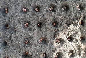 Насіння заглиблюються в грунт від 3 до 7 см, при цьому в одній лунці висаджується до 3 зерен.