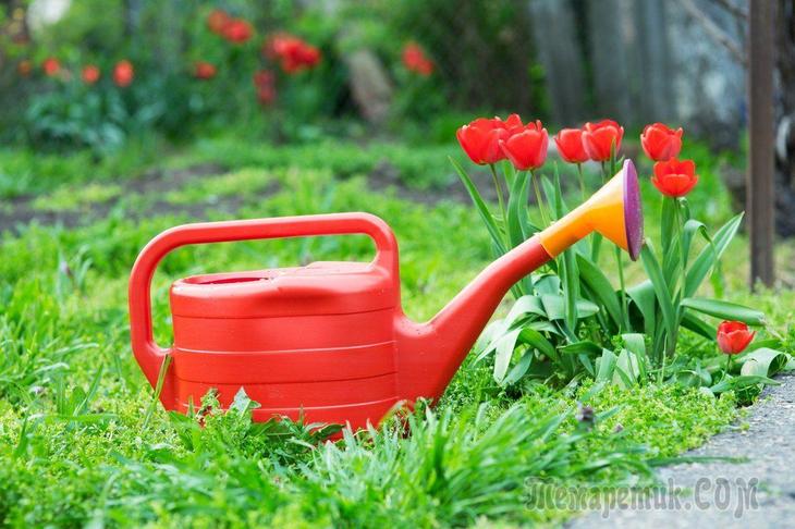 Весеннецветущие рослини (тюльпани, нарциси, гіацинти та ін.) Поливайте так, щоб грунт був вологим на глибину 20 см. Це особливо важливо, якщо травень видасться теплим і сухим.