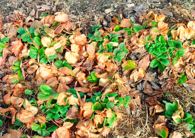 Видаляти покладається все засохле листя полуниці. Разом з ними у полуниці обрізають пошкоджені і хворі пагони. Залишити рекомендується тільки 5-7 см від ґрунту. В крайньому випадку, коли хвороба поширилася на велику частину кущика, зрізати доведеться все листя.