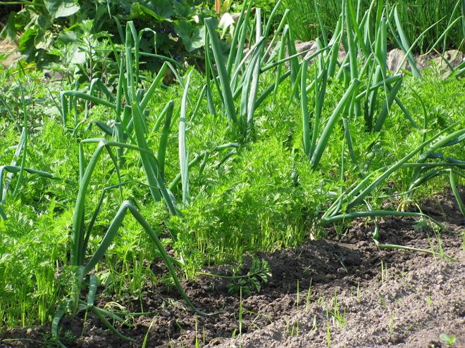 Захистити морква від шкідника можна також, посадивши по сусідству цибулю. Деякі дачники навіть спеціально чергують ряди цибулі і моркви на грядках. Добре допомагає в боротьбі зі шкідником і мульча. Трава, тирса або хвойний опад не дозволять лушпиння мусі відкласти яйця в грунті.