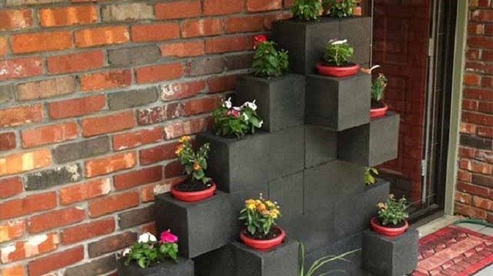 А можна зробити квітник з будівельних блоків.Залежно від того, як пофарбовані блоки, можна створити абсолютно різні конструкції: від строго чорних до забавної кольорової мозаїки.