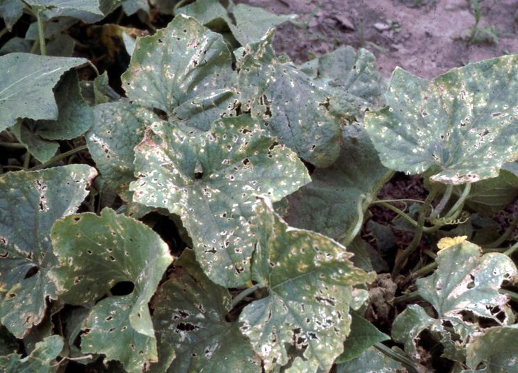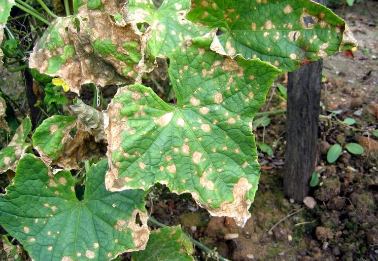 Це захворювання викликає грибок Colletotrichum lagenarium, здатний розмножуватися при сприятливих умовах протягом усього вегетаційного періоду. Про його наявність свідчать жовто-бурі округлої в основному форми плями на листі, від яких вони некротизируются і кришаться.