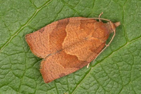 Опис. Пошкоджує кущі гусениця, яка зимує в павутинному коконі під рослинними залишками і під корою дерев.Передній і задній кінець тіла шкідника чорного кольору. Навесні гусениці виходить з кокона і харчуються листям полуниці. Закінчивши зростання в кінці травня-початку червня, вони обертаються в лялечку між двома стягнутими павутиною неушкодженими листям. Через 10-15 днів з лялечки з'являється метелик, яка харчується нектаром і відкладає до 100 яєць, розміщуючи їх по одному на плодах і листках. Передні крила метеликів буро-коричневі або темно-сірі, мають кілька темних цяток, світлі в верхній частині. Задні крила однотонні темно-сірі. Через 10-12 днів з відкладених яєць з'являється друге покоління шкідників, які живляться до осені. Листовійка всеїдна, пошкоджує багато плодових дерев і ягідні чагарники.