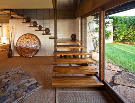 - деревина має оригінальну фактуру і привабливий забарвлення, тому сходи служать ефектним прикрасою інтер'єру;