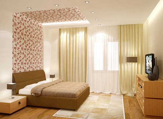 Порада. Якщо постало питання про наклеювання шпалер комбінованого зразка в спальню з невисокою стелею, то не варто вибирати дуже темні тони, які можуть зробити його ще нижче. Якщо спальня має строгу прямокутну форму, то вузькі стіни можна оформити глибокими темними шпалерами, а широкі, навпаки, більш світлими. Цей нехитрий прийом зробить кімнату ширше і просторіше.