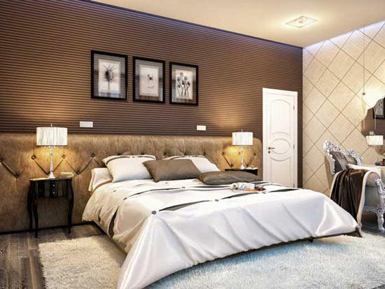 У процесі розробки дизайну інтер'єру спальні слід уникати насичених коричневих тонів для оформлення стін. Це здатне зробити його нудним і нецікавим. Шпалери повинні виступати стриманим і нейтральним фоном, який буде підкреслювати красу меблів.