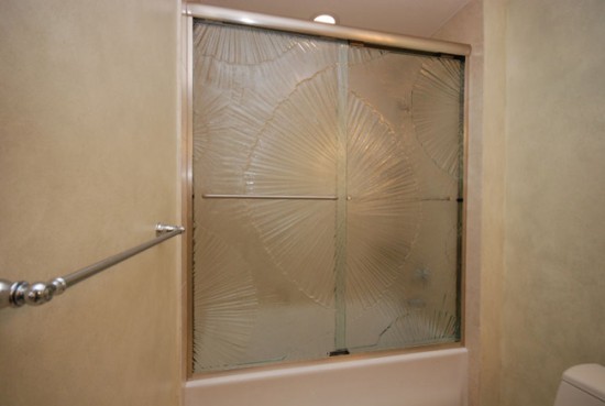 Також шторки можуть бути прикрашені різноманітними принтами і візерунками – сучасні технології дозволяють перенести на скляну поверхню будь-яке зображення. А для додання шторкам цікавого текстурного ефекту, можна використовувати вологостійкі клеяться плівки зі всілякими тисненнями.