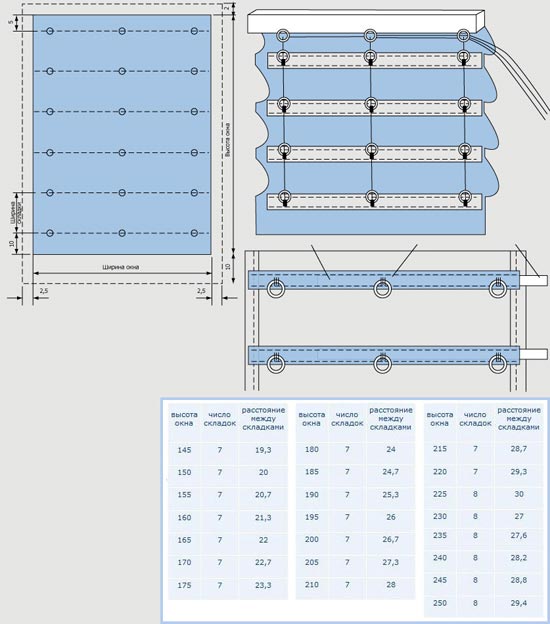 - Треба також вибрати шнур, який буде відповідати наступним параметрам: дві довжини і одна ширина майбутньої штори.