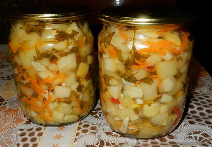 - Овочі промити, нарізати невеликими шматочками і викласти в банки.