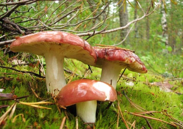 - сироїжка болотна (Russula paludosa) характеризується капелюшком з гладкою, злегка липкою поверхнею, пластинами білого або блідо-жовтого забарвлення і білою м'якоттю. Вона має полуконусную форму, яка в подальшому переходить в увігнуту. Її діаметр становить в середньому 15 см, основне забарвлення яскраво-червоний, а середина темно-бура. Білі або рожеві ніжки досягають 12 см в довжину і не більше трьох в діаметрі. Запах у даного виду грибів відсутній, смак м'який і ніжний.