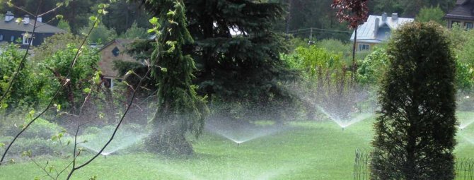 Дождевальная система автополиву буде здійснювати полив ділянки за заданим графіком. Кращий час для її монтажу – осінь, в цей час ризик пошкодити рослини менше. Автополив дозволить замінити шланги і відра в саду на маленькі фонтанчики, завдяки яким можна виростити рівномірний красивий газон, розкішну клумбу. При правильно і ретельно продуманою установці системи все механізми ховаються під землею або маскуються, так що на зовнішній вигляд ландшафту установка ніяк не вплине. Система буде здійснювати полив саду за заданою програмою і під час вашої відсутності, а ви не будете турбуватися про стан рослин.