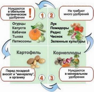 Посадка на відведеній ділянці з року в рік одного типу овочевих культур призводить до значного виснаження ґрунту і відчутного дефіциту того чи іншого елемента.