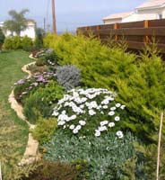З сланких форм також виходять красиві і довговічні широкі бордюри. З одного боку, хвойні здатні замаскувати похибки мощення, а з іншого – вдало вписуються в зелену гладь газону або в буйне різношерста спільнота квітника. Висаджуючи такі бордюри, також не забудьте залишити місце для розвитку рослин. А для більш щільного заростання середини весни після танення снігу можна прищипнуть або постригти кінці пагонів.