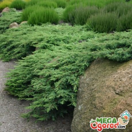 Ялівець стелеться або горизонтальний, є карликовим чагарником, тому не виростає у висоту вище 10 см, його хвоя світло-зеленого кольору. Рослина любить відкрите сонце, тільки ялівець звичайний може рости в тіні і не втрачати свої декоративні властивості. Чагарник легко адаптується до будь-якого виду грунту і не вимагає великої кількості вологи, спокійно росте на кам'янистих місцевостях.