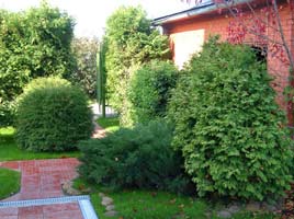 І, мабуть, одне з найголовніших рослин для декоративного саду – це туя. Туї теж рослини надзвичайно різноманітні, у них є і дивовижні золоті форми, види з незвичайною формою крони, колоноподібні, кулясті, сланкі форми, іноді можна зустріти туї з білими кінчиками. Це саме невибаглива з хвойних садових рослин. Всі ці рослини мають тільки одну особливість дуже сприятливу для нас – туї прекрасно переносять пересадку. Вони не бояться пересадки практично в будь-який час, якщо пересаджувати їх з грудкою землі.