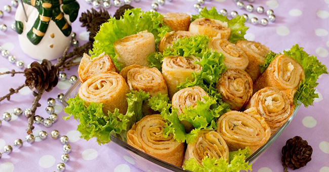 Цей оригінальний салат на святковий стіл з млинцями і куркою дуже схожий на букет ніжно бузкових троянд, просто око не відвести! До речі, таким же способом можна легко прикрасити класичну «Оселедець під шубою», і навіть фруктовий салат, тільки ось млинці в цьому випадку потрібно буде спекти солодкі, а в якості начинки може виступити варення або молочний крем. Готуйте з задоволенням, пригощайте гостей, такі смачні салати і закуски до святкового столу завжди на допомогу і не забудьте поділитися рецептом з друзями!
