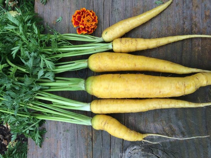 Морквини відрізняються за зовнішнім виглядом від більш звичних нам помаранчевих побратимів завдяки наявності в них ферменту ксантофіла.