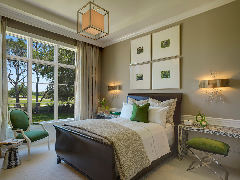 Декоративні рослини. Як квіти на вікні, так і розкішні пальми в діжках прекрасно доповнять обстановку спальні в зелених тонах, більш того: ефектні, помітні рослини додадуть їй шик. Можна обмежитися рослинами одного виду, а можна створити мальовничу групу з різних.