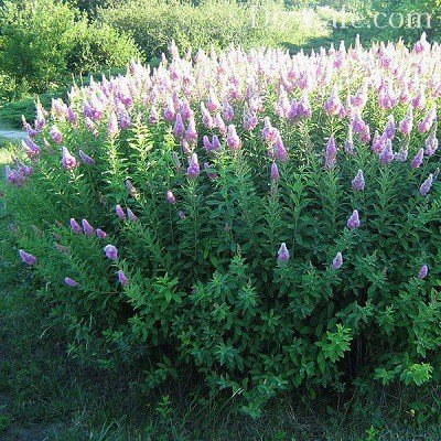 - спірея Дугласа. Період цвітіння – липень-вересень. Квітки – темно-рожеві. Кущі виростають до 1,5 м заввишки.
