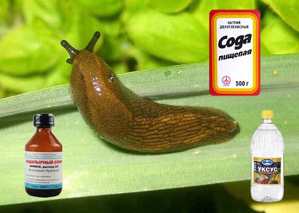 У захисті рослин від равликів і слимаків відмінно допомагає обприскування нашатирним спиртом, оцтом і харчовою содою. Щоб приготувати розчин візьміть 1 ч. Ложку кошти (оцет краще брати 9%) і розчиніть в 1 літрі води. Обприскуйте рослини зверху по листу і знизу.