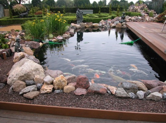 Декорувати ставок можна різноманітними породами каменів, стійких до водних умов. Не можна використовувати вапнякові види, тому що вони швидко розмиваються водою.