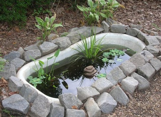 2. Найпростішим способом є використання в якості ємності для ставка чаші ванни. Це буде не тільки красиво, але і вигідно з економічної сторони.