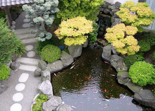 Японський стиль може бути присутнім в оформленні будь-якого ставка. Необхідно підкреслити всі стихії. Головним тут – це оформлення берегів. Обов'язковою умовою є посадка карликових і невеликих рослин. Між ними красиво слід укласти валуни і камені, які можуть переходити безпосередньо в ставок.