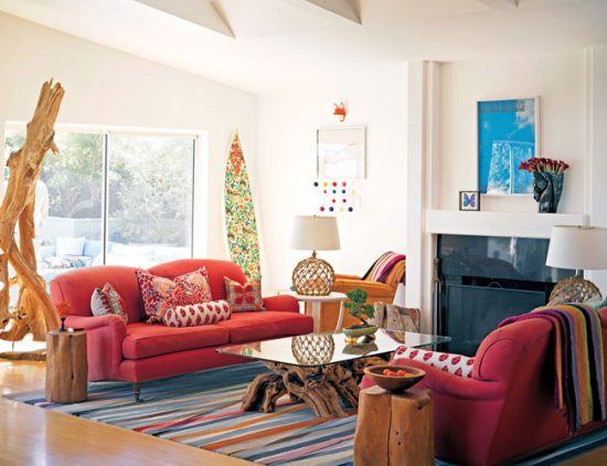 Немає обмежень і по колірній гамі. Можна зустріти поради, що фарби повинні бути яскравими, але, в той же час, натуральними. Це не зовсім так: в інтер'єрі в стилі бохо можна поєднувати будь-які кольори і відтінки, від природних, до синтетичних, кислотних. Головне завдання декоратора – створити органічне поєднання кольорів. А вибір палітри залежить обраної від стилістичної спрямованості.