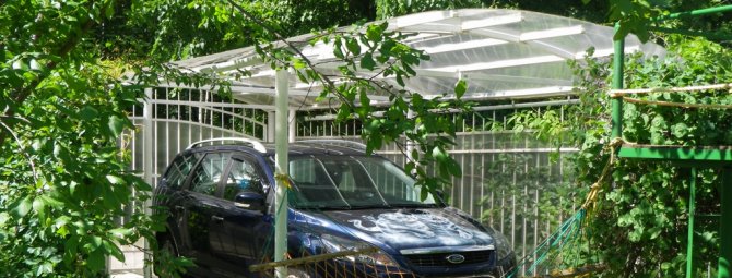 Стоянка з полікарбонату виглядає повітряно і легко монтується