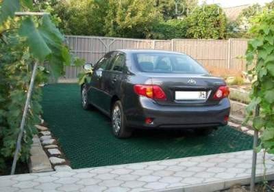 Жива трава дуже нестійка до тиску коліс, але якщо її замінити на штучний газон, то стоянка вийде гладкою і красивою