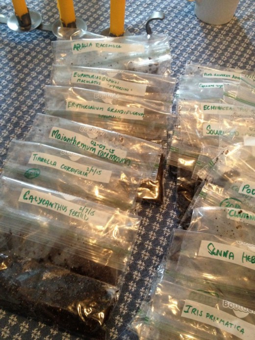 Насіння декоративних рослин упаковані для зберігання і стратифікації.