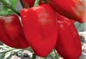 - Тополин. Сорт виділяється якісними і вельми великими плодами. Їх вага може досягати позначки в 150 грам. Плодоношення настає через 110 днів. Плоди конічної форми, темно-червоного кольору з тонкими стінками. Високорослі кущі вирощують на шпалері, формуючи в два стебла, низькорослі – в штамбової формі, не підв'язуючи. Перець Тополин болезнеустойчів, тому має високу загальну врожайність – 40 – 50 т / га.