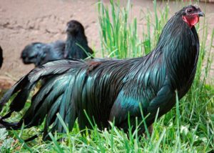 Нового Світу вона стала відома в далекому 1847 р привезена моряками з тропічного острова. Оригінальні породи курей під синьо-чорним оперенням мають істинний бійцівський дух, дуже відомі серед любителів птахів.