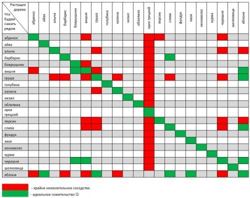 Зверніть увагу на таблицю сумісності плодових дерев і чагарників в саду: