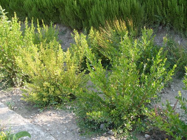 Мирт звичайний – вічнозелений чагарник висотою до 2-3 м з довгасто-яйцевидними або яйцевидно-ланцетними темно-зеленим листям. Цвіте в червні-липні білими запашними квітками. Плід – синювато-чорна, іноді біла ягода, дозріває в листопаді-грудні. Декоративні форми: