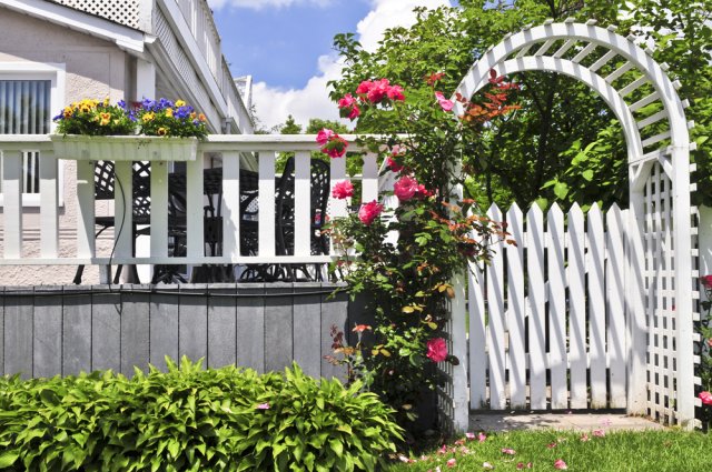 Перголи і арки додадуть ділянці вишуканості і витонченості. Найбільш виграшно виглядають споруди білого кольору. Вони добре поєднуються з рослинами яскравих і насичених кольорів.