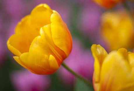 Як і фіолетові, жовті тюльпани вважаються одними з найкрасивіших. У Франції їх прийнято дарувати видужують, В Німеччині – на удачу в бізнесі. Прабатьками квітів з сонячним забарвленням є лісові рослини, що мешкають на півдні Східної Європи.