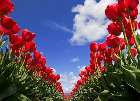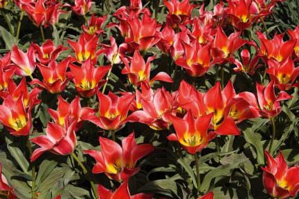 Найяскравіше в степу і на клумбі виглядають червоні тюльпанчики. Полум'яно-червоні бутони будуть доречно виглядати в кожному саду. Сортове різноманіття величних квітів просто величезна: